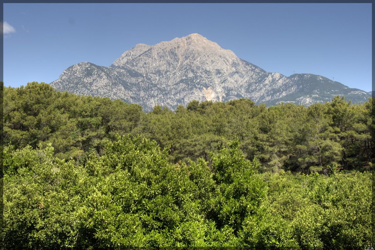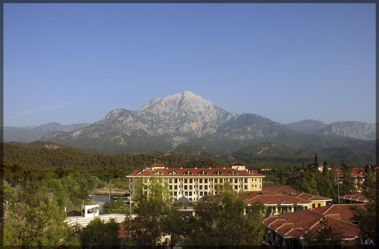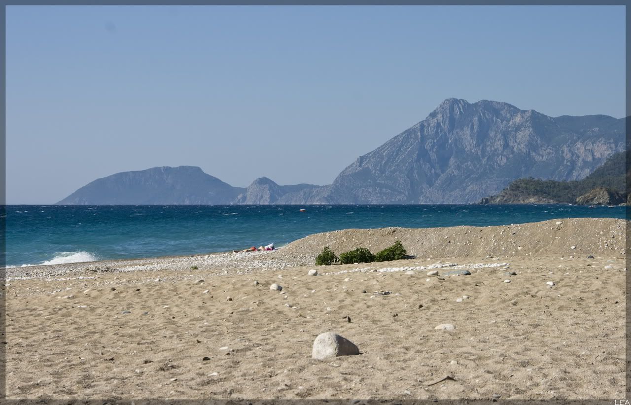 Живописнейшее место, я вам скажу, за отелем открывается вид на гору Тахталы, впрочем она видна там повсюду, окна отеля выходят на море, в котором болтаются три островка, а справа видна гора Олимпос (аборигены утверждают, что та самая). Там же, справа есть апельсиновый сад, по периметру которого растут всякие разные интересные растения и встречается саранча.